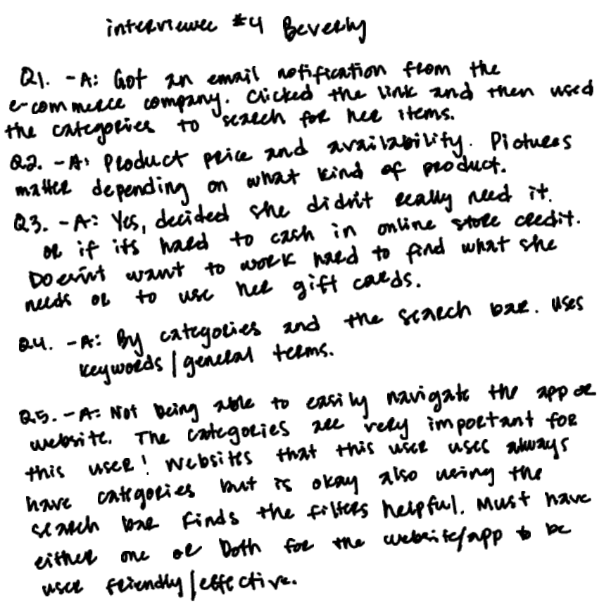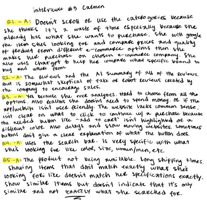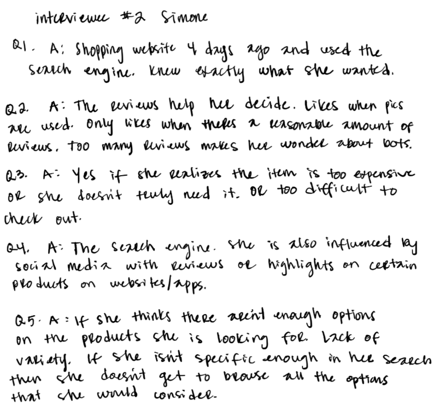 I interviewed several participants who regularly shop online. Each interview focused on their typical shopping behaviors, how they discover products, and what features make them trust or abandon an app.