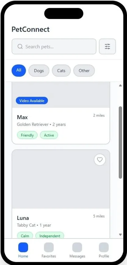 PetConnect is a user-centered platform designed to simplify the pet adoption process by reducing unnecessary friction and making it easier for users to connect with adoptable animals nearby.