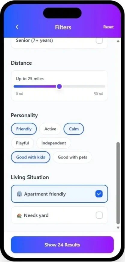 The result is a streamlined and intuitive interface that supports both the practical and emotional aspects of adoption, helping users move from interest to action more seamlessly.